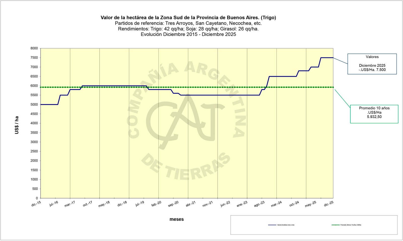 Valor de la hectárea de la Zona Sud de la Provincia de Buenos Aires (Trigo)