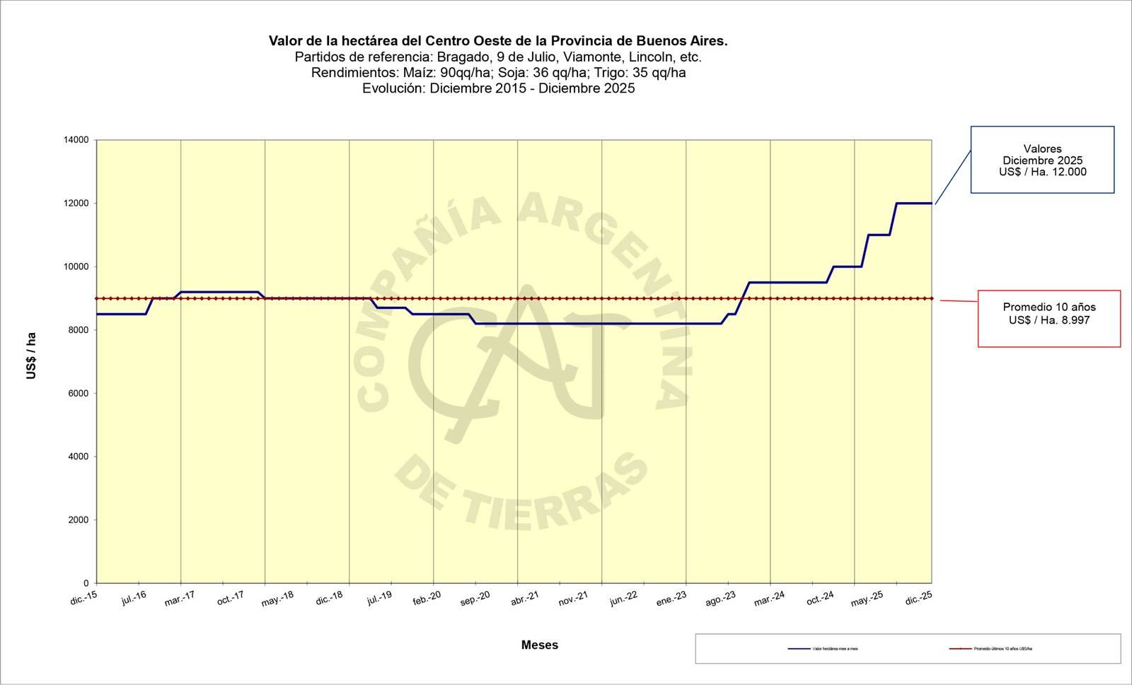 Valor de la hectárea del Centro Oeste de la Provincia de Buenos Aires